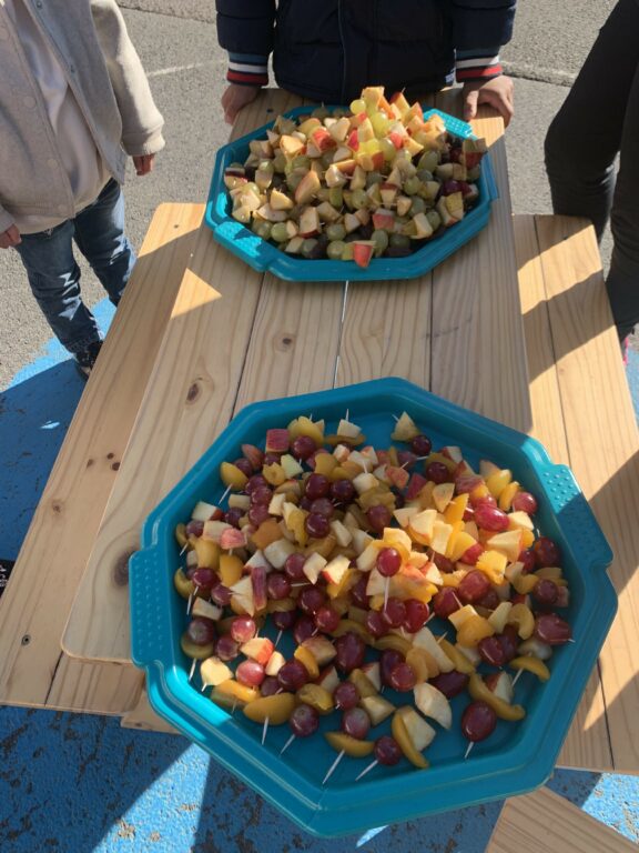 Brochettes de fruits au menu pour cette première période. Les enfants ce sont régalés !