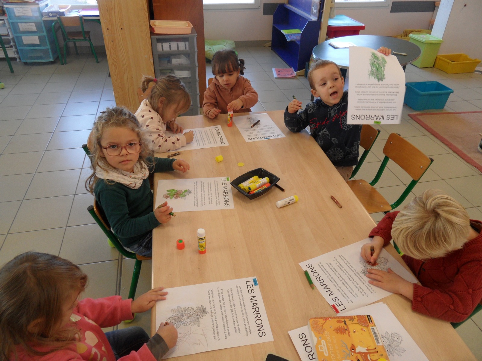 • Chant et coloriage de la comptine : deux marrons