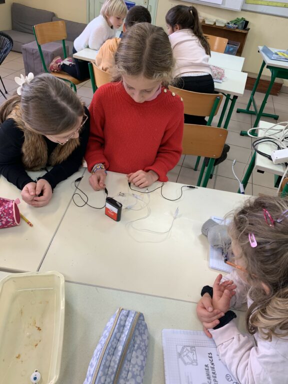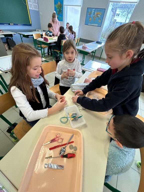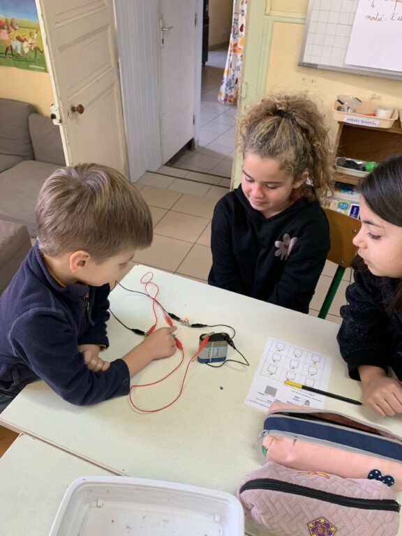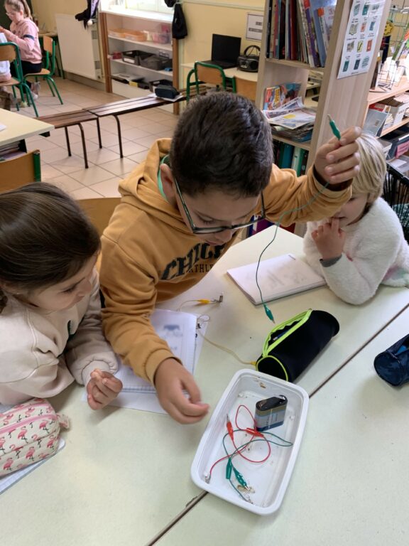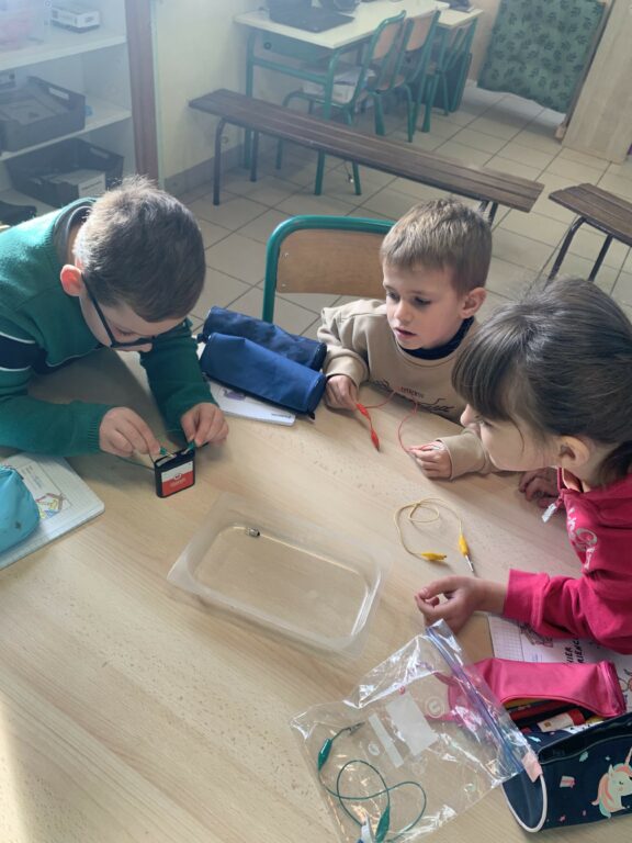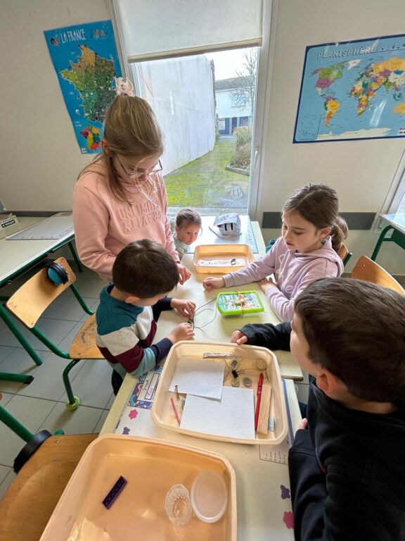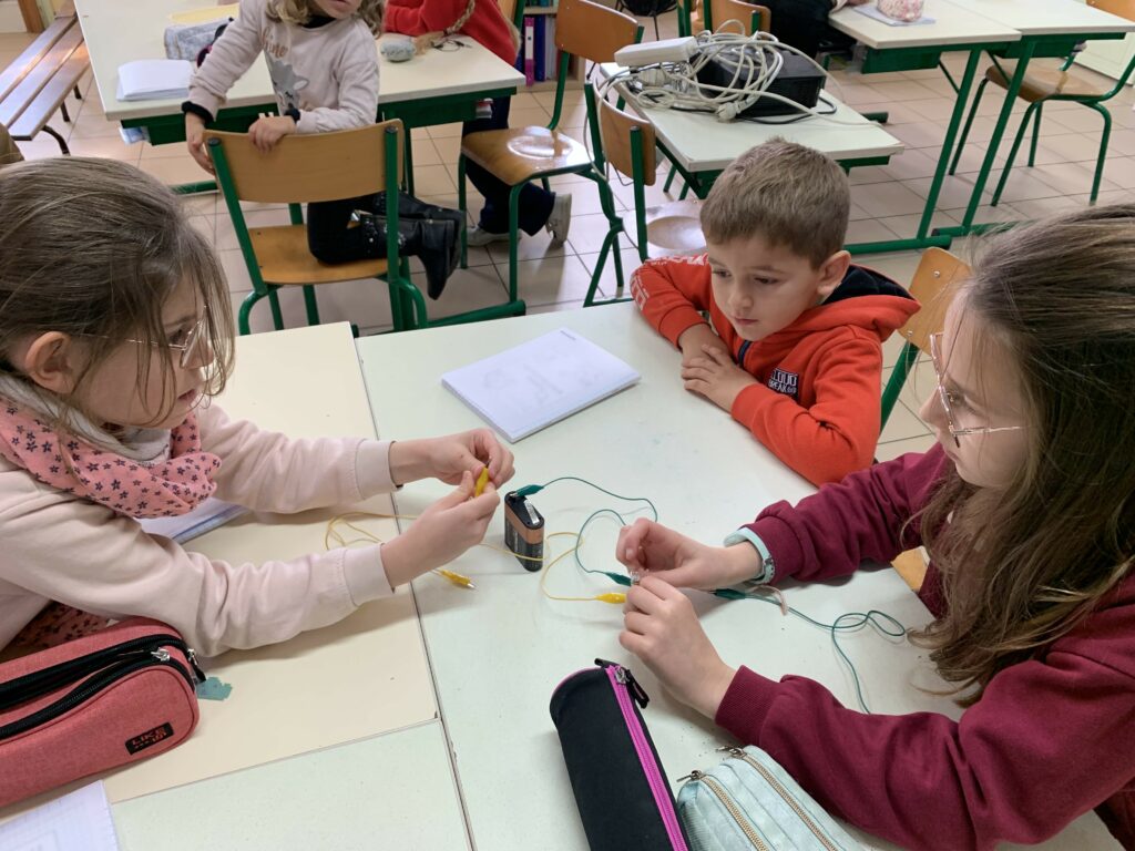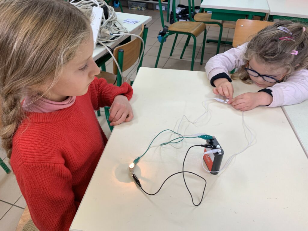 Toutes les classes se sont réunies pour participer à des ateliers autour de l’électricité. Notre mascotte Poulpy a lancé trois défis aux élèves :