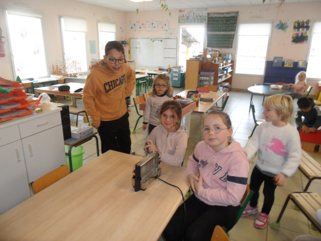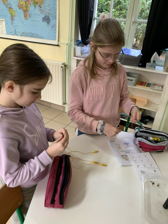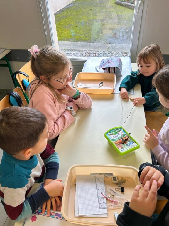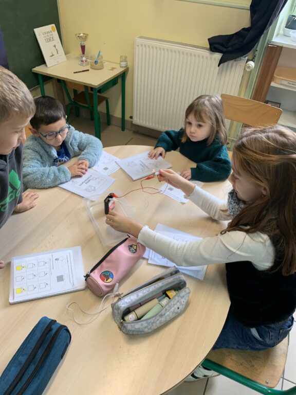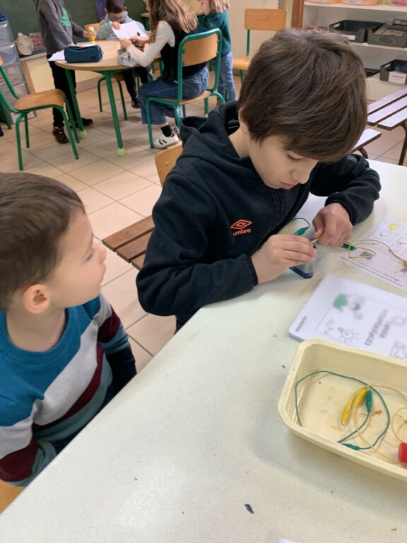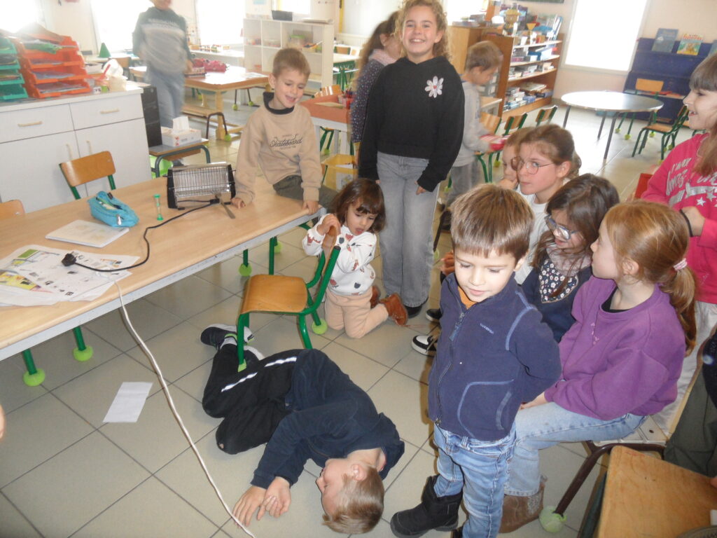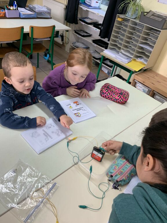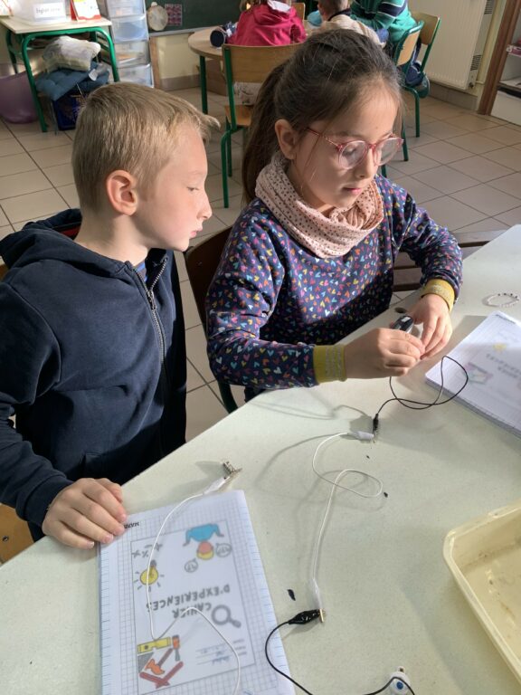 Toutes les classes se sont réunies pour participer à des ateliers autour de l’électricité. Notre mascotte Poulpy a lancé trois défis aux élèves :