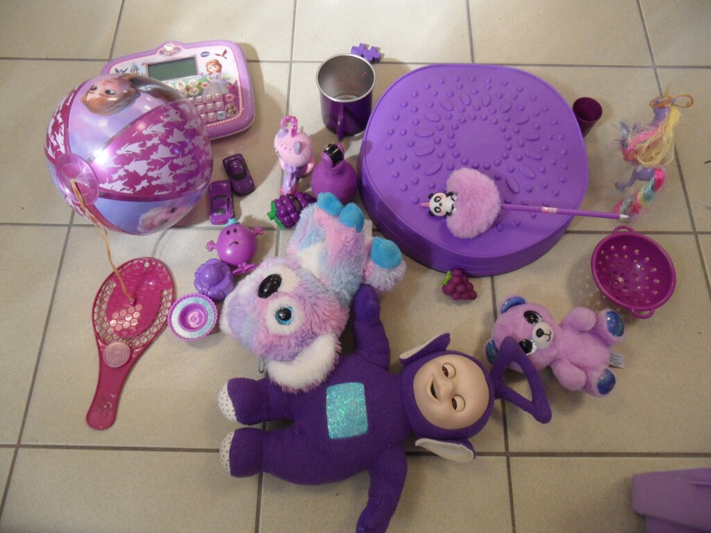 - Jouer au jeu des déménageurs avec des objets violets, en draisienne