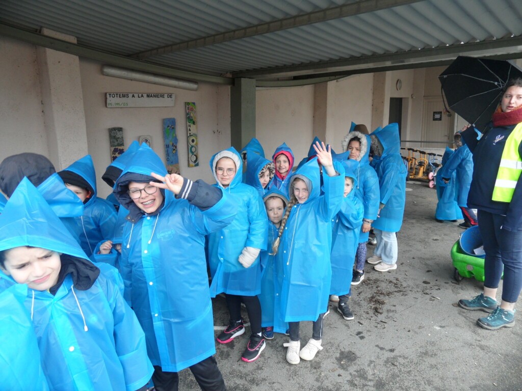 Jeudi 2 avril, les élèves qui mangent à la cantine ont revêtu, pour la première fois, les ponchos fournis par la mairie !