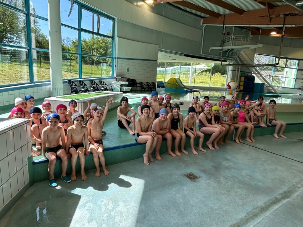 Ça y est ! Les 9 séances de piscine, de la GS au CM2, sont terminées. Tout le monde a énormément progressé ! Voici un petit aperçu de la dernière séance : jeux et toboggans !