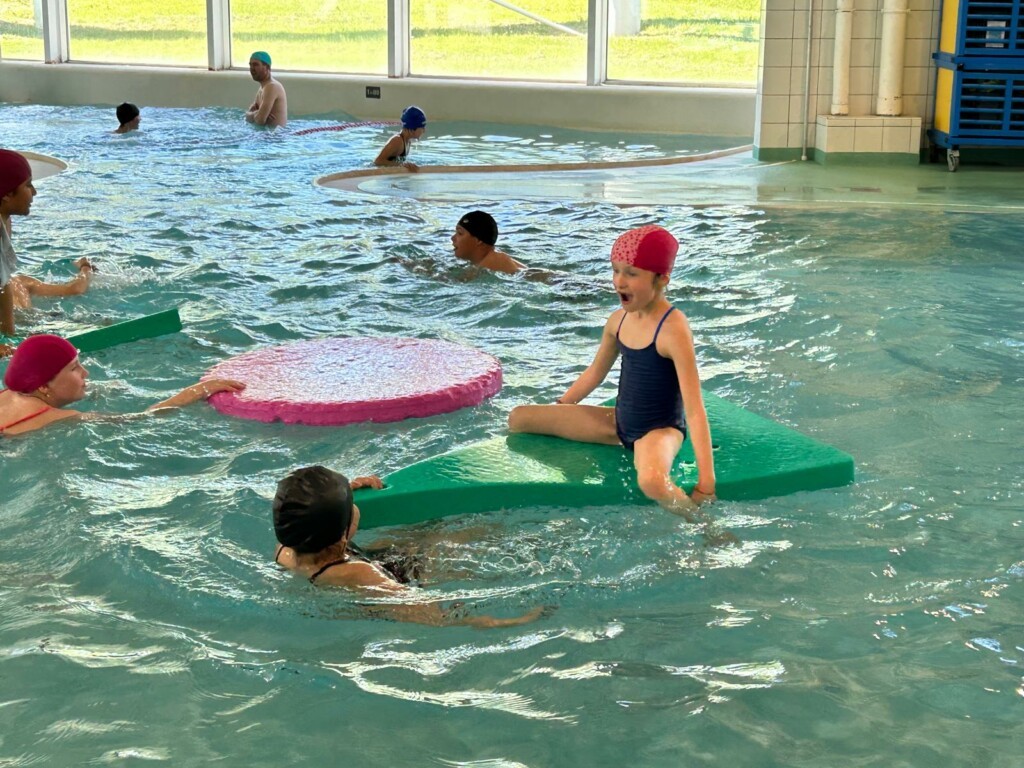 Ça y est ! Les 9 séances de piscine, de la GS au CM2, sont terminées. Tout le monde a énormément progressé ! Voici un petit aperçu de la dernière séance : jeux et toboggans !