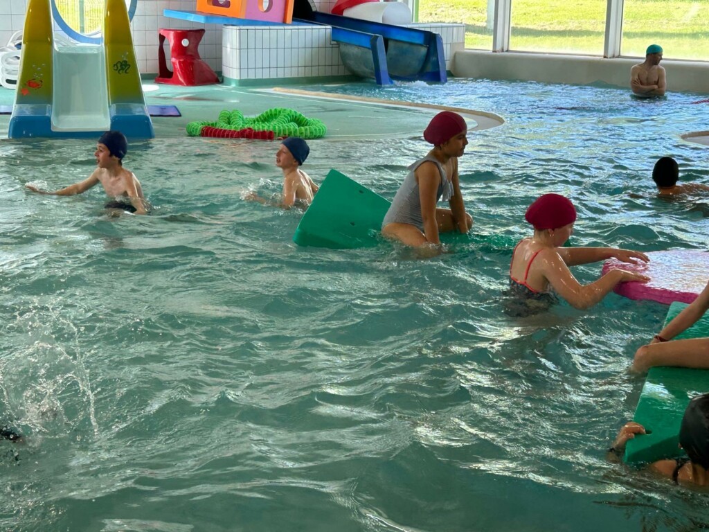 Ça y est ! Les 9 séances de piscine, de la GS au CM2, sont terminées. Tout le monde a énormément progressé ! Voici un petit aperçu de la dernière séance : jeux et toboggans !